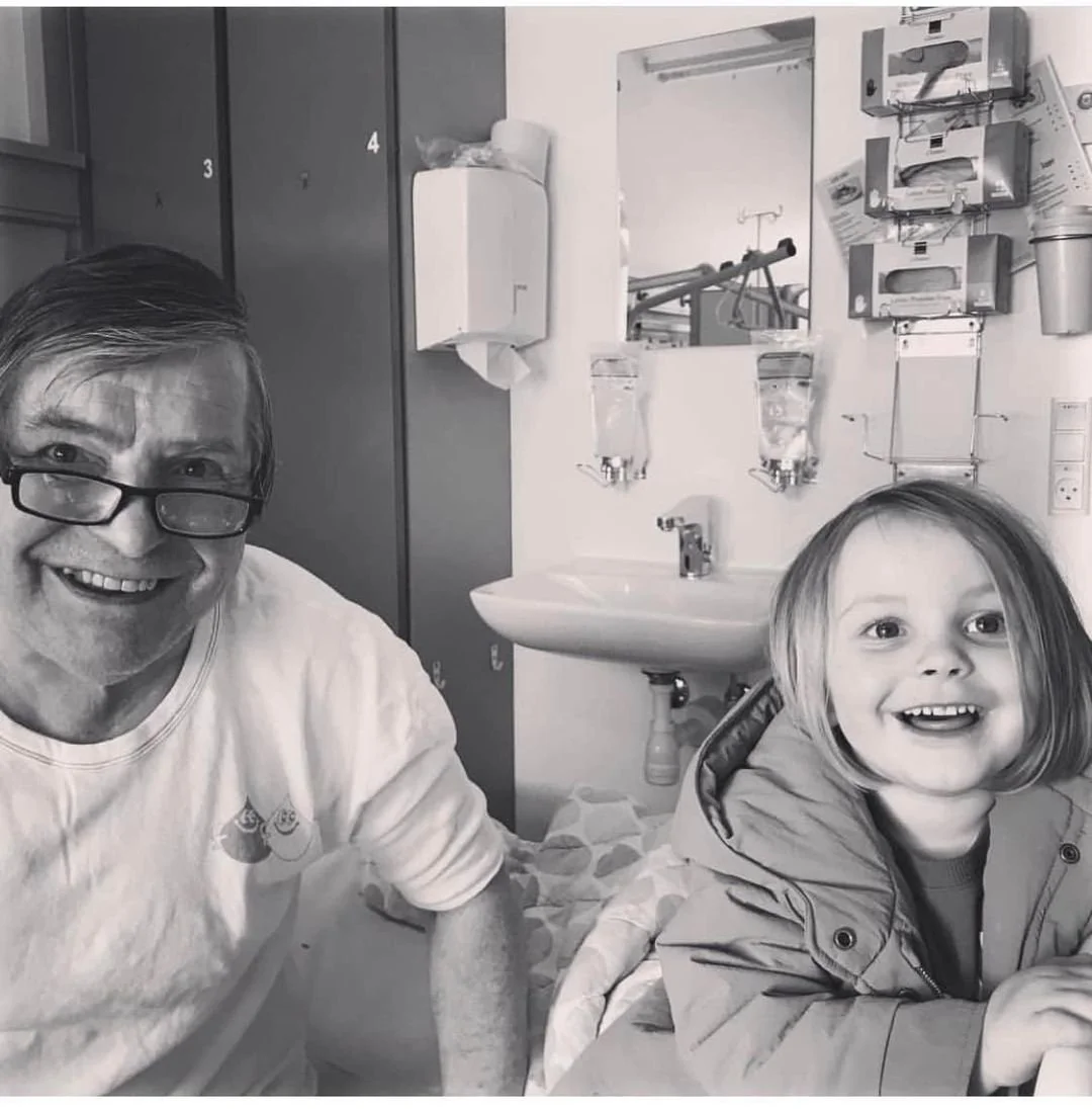 Fredag aften ringede han igen, og jeg var sikker på han ville aflyse. Helt sikker. Men min far aflyste ikke. Han spurgte om jeg ville tage en computer med så jeg kunne hjælpe ham med nogle småting. Og jeg tror ikke der er noget i verden jeg hellere ville end det. Så da jeg vågnede i dag, og jeg vidste at i dag er dagen, hvor min far og mine to smukke børn skal møde hinanden, så bredte der sig en lykke indeni, og selvom jeg er træt og pænt udkørt for tiden, så blev klokken hurtigt 12, og vi fandt vejen til Sønderborg sygehus. Og der gik jeg, med Selinna i slyngen og Emmalia i hånden, og der sad han med ryggen til, min gamle far som jeg ikke har set i 5 år. Og hans øjne strålede og han vidste slet ikke hvad han skulle sige, og jeg var bare så glad, og jeg havde lyst til at øjeblikket skulle vare for evigt. Jeg fandt en kørestol og vi tullede alle fire ned i opholdsstuen hvor vi sad og snakkede i to timer og min far nød at være sammen med mine børn, og Emmalia hoppede jo bare lige ind i mandens hjerte, som hun jo gør. Og Selinna kravlede hen og rejste sig op ad min fars kørestol, og min far smilede og grinede og kiggede med stor kærlighed på pigerne. Og da jeg senere sad og kiggede billederne igennem slog det mig at mine piger har min fars øjne. Venlige rare øjne. Åh hvor kan jeg ikke beskrive hvor vidunderligt det var at hente vand til ham, lytte til ham, fortælle ham lidt om hjerneskade og aftale med ham at vi kommer igen i morgen inden vi vender snuden mod København.